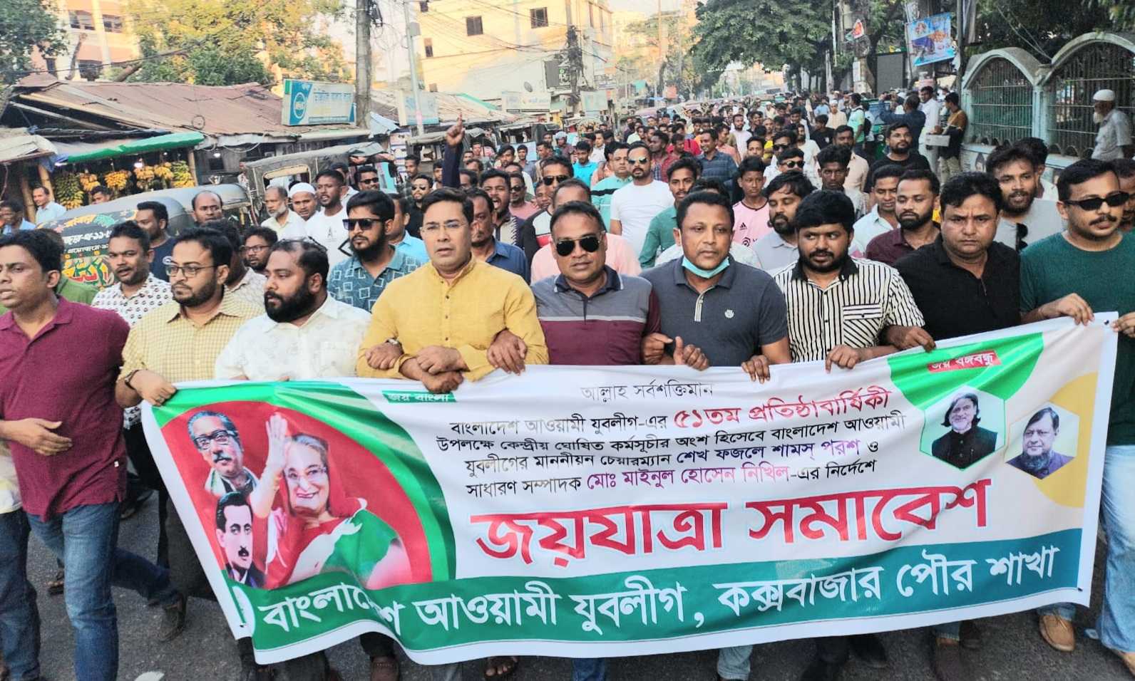 বাংলাদেশ আওয়মী যুবলীগের ৫১তম প্রতিষ্ঠাবার্ষিকী উপলক্ষে বিএনপি-জামাতের দেশবিরোধী ষড়যন্ত্রের প্রতিবাদে এবং ডিজিটাল বাংলাদেশকে স্মার্ট বাংলাদেশে উন্নীতকরণের লক্ষ্যে বাংলাদেশ আওয়ামী যুবলীগের চেয়ারম্যান শেখ ফজলে শামস্ পরশ ও বিপ্লবী সাধারণ সম্পাদক আলহাজ্ব মাইনুল হোসেন খান নিখিল নির্দেশে কক্সবাজার পৌরসভার যুবলীগের উদ্যোগে “তারুণ্যের জয়যাত্রা” সমাবেশ অনুষ্ঠিত হয়েছে।