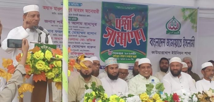 বাংলাদেশ জামায়াতে ইসলামী কক্সবাজার জেলা আমীর অধ্যক্ষ মাওলানা নূর আহমদ আনোয়ারী বলেছেন, ছাত্র -জনতার গণঅভ্যুত্থানে অর্জিত নতুন বাংলাদেশে আবারো ফ্যাসিবাদ প্রতিষ্ঠার ষড়যন্ত্র চলছে। শত- সহস্র তরুণ, শিশু – কিশোর, দিন মজুরের রক্তের বিনিময়ে ৫ আগস্ট অর্জিত নতুন বাংলাদেশ নিয়ে ছিনিমিনি খেলতে দেওয়া হবে না। আমরা ঐক্যবদ্ধভাবে দেশবিরোধী সকল ষড়যন্ত্র মোকাবেলা করতে প্রস্তুত রয়েছি। এদেশের ছাত্র সমাজ অতন্দ্র প্রহরীর ভূমিকা পালন করে আসছে। আমরা তারুণ্যের ভাবনা নিয়ে দেশকে এগিয়ে নিতে চায়। জামায়াতে ইসলামী রামু উপজেলা কাউয়ারখোপ ইউনিয়ন শাখা আয়োজিত কর্মী সম্মেলনে প্রধান অতিথির বক্তব্যে তিনি উপরোক্ত কথাগুলো বলেন। ইউনিয়ন সভাপতি মাওলানা কলিম উল্লাহর সভাপতিত্বে ৮ নভেম্বর অনুষ্ঠিত কর্মী সম্মেলনে বিশেষ অতিথি হিসেবে বক্তব্য রাখেন রামু উপজেলা আমীর ফজলুল্লাহ মোহাম্মদ হাসান, সাবেক সদর উপজেলা ভাইস চেয়ারম্যান জননেতা শহিদুল আলম বাহাদুর, সাবেক উপজেলা আমীর ডা. শাহ আলম, উপজেলা নায়েবে আমীর মাওলানা মুহাম্মদ রফিক ও উপজেলা সেক্রেটারি আ ন ম হারুন। প্রধান অতিথি আরো বলেছেন, জামায়াতে ইসলামী দেশের মানুষের সত্যিকারের ভাগ্য পরিবর্তনের জন্য কাজ চালিয়ে যাচ্ছে। একটি উন্নত, সমৃদ্ধ ও শান্তিপূর্ণ বাংলাদেশ গড়তে জামায়াত প্রতিশ্রুতিবদ্ধ। গণতান্ত্রিক মূল্যবোধ ও মানবাধিকার নিশ্চিত করতে জামায়াত অগ্রনী ভূমিকা পালন করে আসছে। তাই জামায়াত কর্মীদের কে দুর্নীতি, সন্ত্রাস ও চাঁদাবাজ মুক্ত বাংলাদেশ গঠনে এগিয়ে আসার আহ্বান জানান। ইউনিয়ন সেক্রেটারি আবুল ফয়েজের সঞ্চালনায় অনুষ্ঠিত কর্মী সম্মেলনে আরো বক্তব্য রাখেন উপজেলা সহকারী সেক্রেটারি মাওলানা নূরুল হাকিম, সাংগঠনিক সেক্রেটারি মাওলানা রফিকুল আলম, উলামা বিভাগ সভাপতি মাওলানা বশির উদ্দিন, যুব বিভাগ সভাপতি মাহবুবুর রহমান, জামায়াত নেতা তৈয়ব উল্লাহ, আব্দুশ শাকুর, মকবুল আহমাদ, মাওলানা মুহাম্মদ হাসান, মাস্টার উসমান গনি ও ছাত্রনেতা ইরাক মিয়া ।