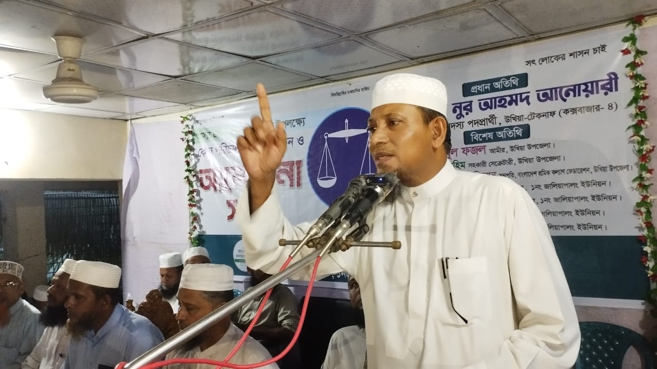 কক্সবাজার জেলা জামায়াতের আমীর অধ্যক্ষ মাওলানা নূর আহমদ আনোয়ারী বলেছেন, নিরাপদ ও বাসযোগ্য বাংলাদেশ বিনির্মাণের লক্ষ্যে দাঁড়ি পাল্লার পক্ষে জনমত গঠন করতে হবে। আমরা ন্যায় ও ইনসাফের ভিত্তিতে একটি সুখী সমৃদ্ধশালী বাংলাদেশ বিনির্মাণে প্রতিশ্রুতিবদ্ধ। তরুণ ও যুবকদের কে কাংখিত বাংলাদেশ উপহার দিতে আমরা কাজ চালিয়ে যাচ্ছি। আমরা দেশ থেকে দুর্নীতি ও অনিয়ম দূর করে বৈষম্য মুক্ত বাংলাদেশ গড়ার জন্য লড়াই চালিয়ে যাচ্ছি। তিনি জামায়াতের প্রত্যেক কর্মীকে মানুষের ঘরে ঘরে গিয়ে নিরাপদ ও বাসযোগ্য বাংলাদেশ বিনির্মাণে জামায়াতের গৃহীত পদক্ষেপ তুলে ধরার জন্য আহ্বান জানান। ২২ আগস্ট জুমাবার জালিয়া পালং ৯ নং ওয়ার্ড আয়োজিত কর্মী সমাবেশে প্রধান অতিথির বক্তব্যে তিনি উপরোক্ত কথাগুলো বলেন। ওয়ার্ড সভাপতি আব্দুল মাবুদের সভাপতিত্বে অনুষ্ঠিত সমাবেশে বিশেষ অতিথির বক্তব্য রাখেন উপজেলা আমীর মাওলানা আবুল ফজল, উপজেলা সহকারী সেক্রেটারি মাওলানা আব্দুর রহিম, শ্রমিক নেতা রিদোয়ানুল হক জিশান, ইউনিয়ন নায়েবে আমীর দিদার আহমদের সঞ্চালনায় অনুষ্ঠিত সমাবেশে আরো বক্তব্য রাখেন স্থানীয় জামায়াত নেতা হাফিজ মুহাম্মদ শফিউল্লাহ, মোহাম্মদ ইলিয়াছ, খাইর আহমদ সিকদার, নূরুল আবছার, শাহজাহান সিকদার, ডা. মাওলানা আবুল বাশার প্রমুখ।