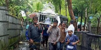 জীবনের ঝুঁকি নিয়ে লাশ কাঁধে কবরস্থ